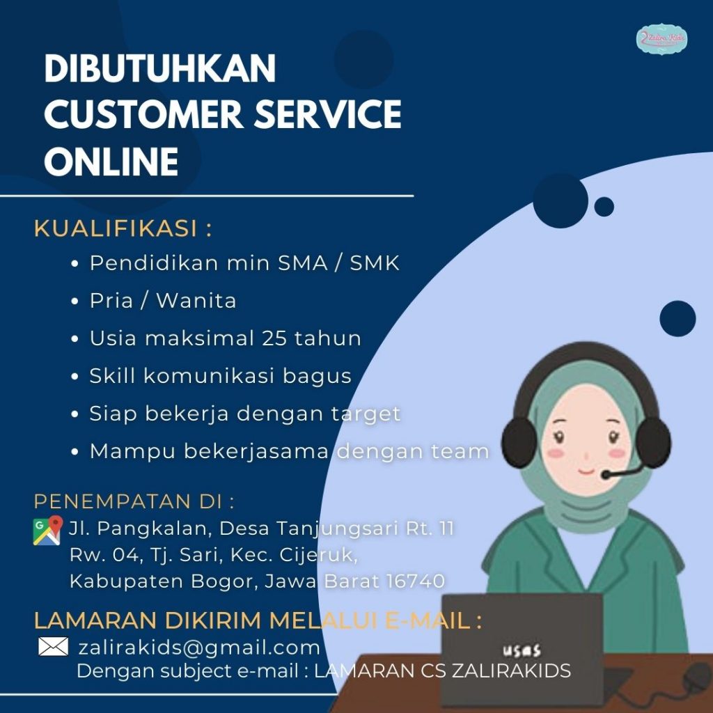 Lowongan kerja Costumer Service Zalaira Kids area Bogor posted in KARIR BOGOR, LAIN LAIN on 28/01/2022 by Karir Bogor SHARE Tweet