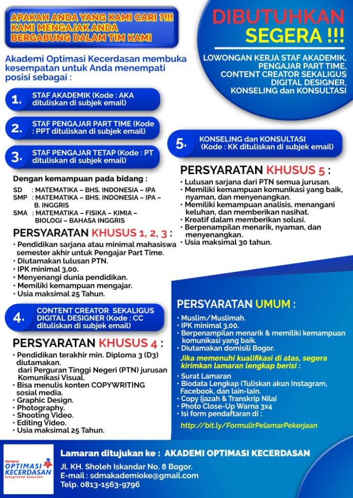 Akademi Optimasi Kecerdasan kesempatan untuk anda menempati posisi sebagai :