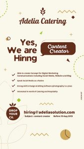 Kami dari PT Adelia Caterindo Utama. sedang mencari Anda yang merasa kreatif.